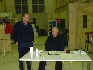 Meidän osaston sihteeri istuu jo harjaantuneesti näytönvalvojana ja puheenjohtaja toimii mietintämyssyn kanssa katselijana. Mielenkiinnolla seurataan töiden valmistumista.