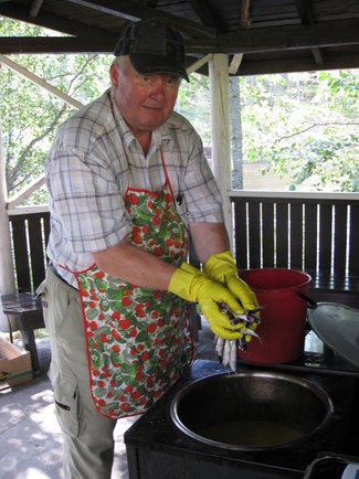 ![]() Rantakalaa keittämässä Pertti Räsänen 22.7.2010 Lintulahden majalla Kainuun Jyväskylän ja Iisalmen rakentaja eläkeläisvieraille rakennusmessujen aikaan,vieraita oli loppuun 100 henkeä. |