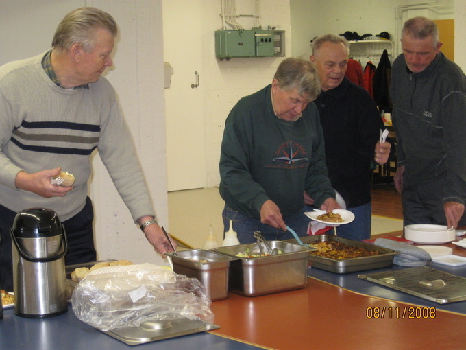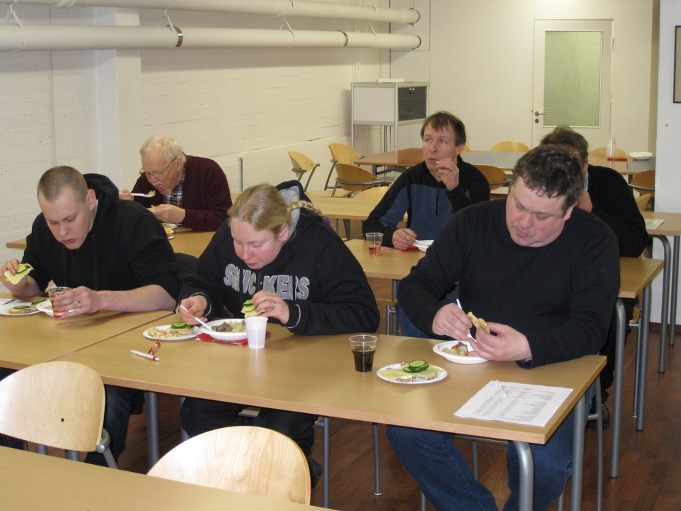 Ja ruoka maistuu.Kuvassa Lauri Kuuspalo, Varma Luukkonen,Alvi Bunda ja Jouko Brilli.