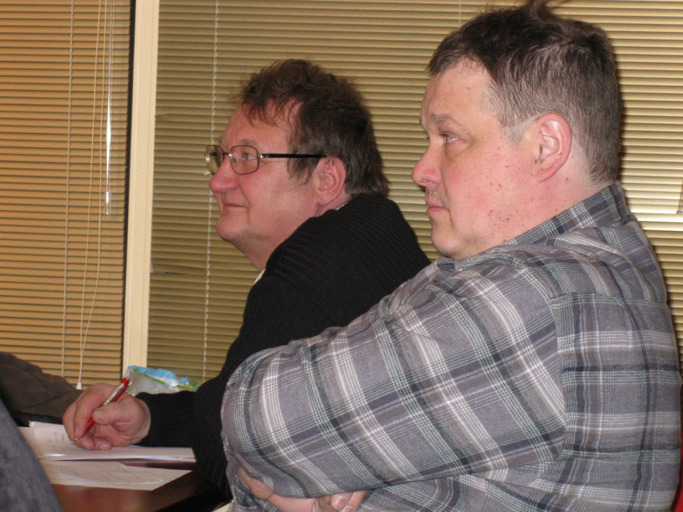 ![]() Jäsenet kuuntelevat tilannekatsausta tarkkaavaisina. |